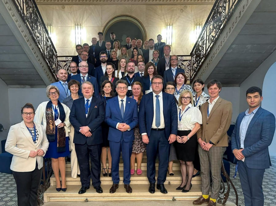 W pierwszym rządzie widoczni są prof. Andrzej Gorgol, Rektor UwB prof. Mariusz Popławski, była Prorektor URz prof. Elżbieta Feret, Dziekan Wydziału Prawa Uniwersytetu Pavla Jozefa Šafárika w Koszycach prof. Miroslav Štrkolec wraz ze współpracownikami.